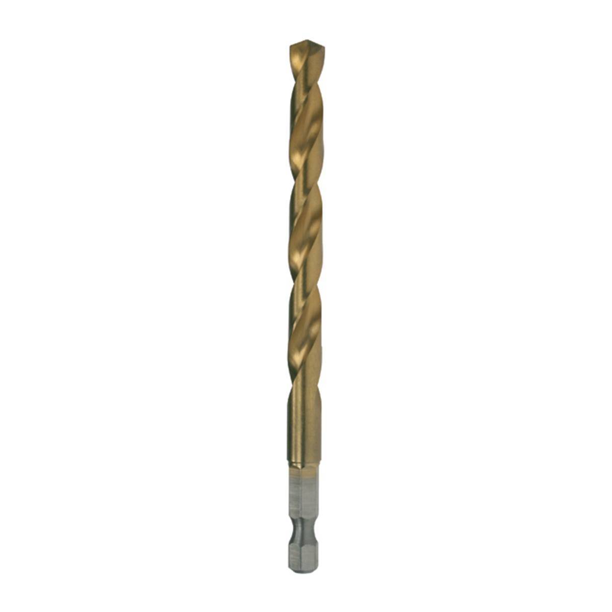 Brocas indicadas para el taladrado de acero con resistencia máxima de 900 N/mm², metales de fundición, plásticos duros y metales no ferrosos. Brocas recubiertas de nitrato de titanio que reduce la fricción y consigue mayor duración de la vida de la broca. Brocas un 40% más rápidas que nuestra gama HSS-G.