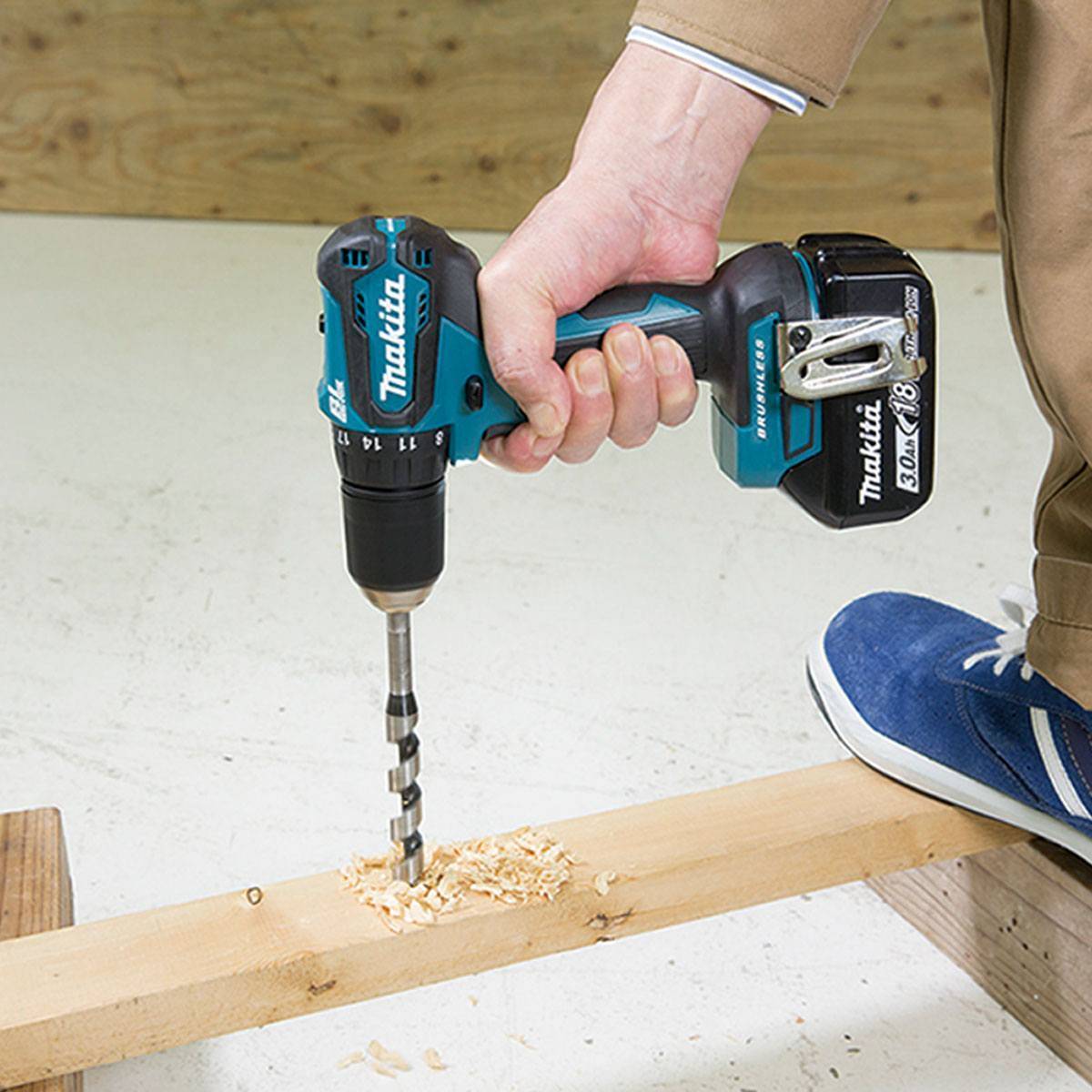 DDF483RFE Taladro atornillador Makita motor BL a batería18V 3,0Ah, taladro de 18V con el tamaño de uno de 10,8V y con hasta 20 posiciones de par, para un mejor apriete.